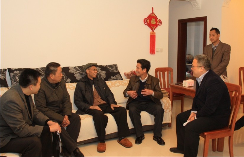 集團(tuán)公司董事長朱堅和(左四)、黨委副書記張友坐(左二)慰問困難職工