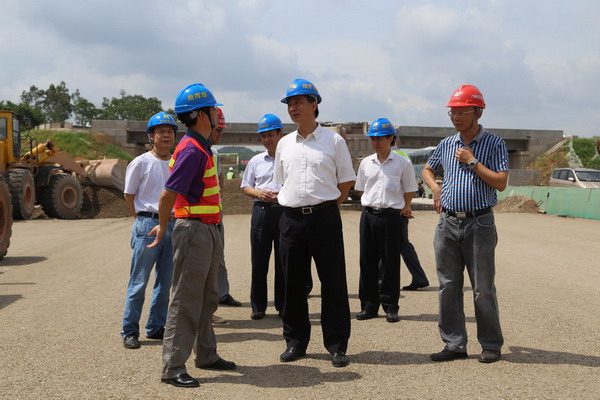 8月7日上午,自治區(qū)國資委主任、黨委書記管躍慶一行來到集團(tuán)公司承建的沿海高速改擴(kuò)建項(xiàng)目工地,在那馬北互通立交工地現(xiàn)場,全面了解項(xiàng)目投資、業(yè)績考核完成情況和一期工程及后續(xù)改擴(kuò)建工程推進(jìn)情況,察看沿海高速改擴(kuò)建一期工程瀝青路面施工進(jìn)展。管躍慶要求,要認(rèn)真貫徹中央和自治區(qū)黨委、政府穩(wěn)增長、促改革、調(diào)結(jié)構(gòu)、惠民生的決策部署,主動(dòng)作為,扎實(shí)抓好項(xiàng)目管理、建設(shè)質(zhì)量和安全生產(chǎn),為我區(qū)經(jīng)濟(jì)社會(huì)發(fā)展和實(shí)現(xiàn)“兩個(gè)建成”作出積極貢獻(xiàn)。集團(tuán)公司總經(jīng)理李定倫陪同調(diào)研。