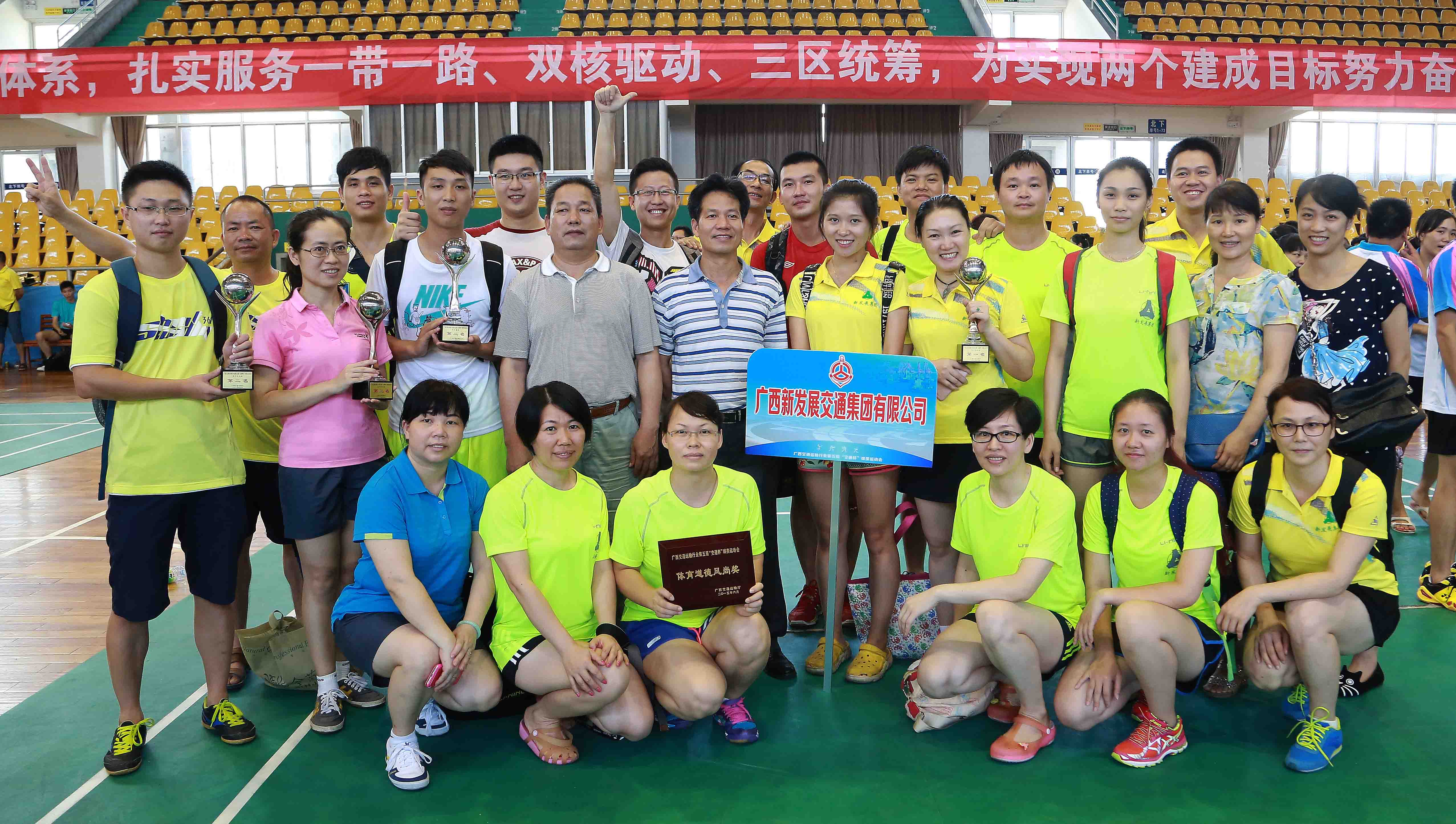6月26-28日,廣西交通運(yùn)輸行業(yè)第五屆“交通杯”球類運(yùn)動會在廣西體育館舉辦,共有27個單位、企業(yè)參加了本屆運(yùn)動會。我集團(tuán)公司朱堅和董事長、黨委書記為團(tuán)長,劉明洪、張友坐、鄧遠(yuǎn)志、覃炳賢等領(lǐng)導(dǎo)班子成員為副團(tuán)長,率團(tuán)參加運(yùn)動會。集團(tuán)公司代表團(tuán)(70余名運(yùn)動員)在連續(xù)3天的運(yùn)動會日程里,參與了男子籃球、氣排球(男子組、女子組)、乒乓球(男子團(tuán)體、女子團(tuán)體)、羽毛球(男子團(tuán)體、女子團(tuán)體)等比賽項目競技,并獲得優(yōu)異成績。