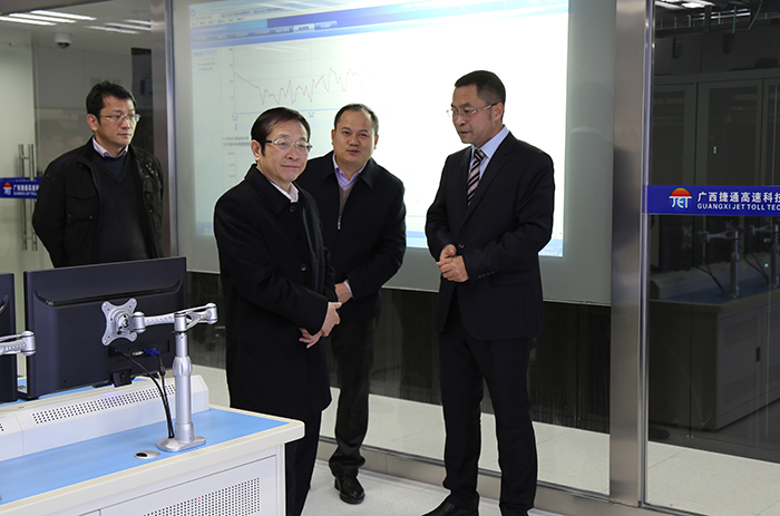 高雄深入了解了廣西ETC項(xiàng)目攻堅(jiān)及實(shí)現(xiàn)全國(guó)聯(lián)網(wǎng)后運(yùn)營(yíng)情況,充分肯定了新發(fā)展集團(tuán)在科技、人才領(lǐng)域的突出優(yōu)勢(shì),特別是近期在參與智慧交通、智慧城市建設(shè)中所作出的努力和貢獻(xiàn)。高雄一行參觀了建設(shè)在捷通公司的全區(qū)ETC系統(tǒng)中心機(jī)房,認(rèn)真聽(tīng)取了呂毅關(guān)于我區(qū)ETC系統(tǒng)運(yùn)營(yíng)狀況、八桂行卡發(fā)行量、機(jī)房設(shè)備及安裝運(yùn)轉(zhuǎn)、車載OBU裝載使用等情況匯報(bào)。