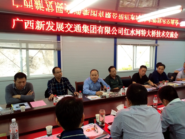 近日,由集團(tuán)公司牽頭、路橋工程集團(tuán)配合,組織開(kāi)展了赴貴州省惠羅高速紅水河特大橋考察交流活動(dòng)。集團(tuán)公司唐咸秋總經(jīng)理、李德智副總經(jīng)理、覃炳賢總工程師以及集團(tuán)公司總部、路橋集團(tuán)、路建集團(tuán)、設(shè)計(jì)院、科研院及新恒通公司的相關(guān)領(lǐng)導(dǎo)、技術(shù)骨干一行共28人參加了本次考察交流活動(dòng)。