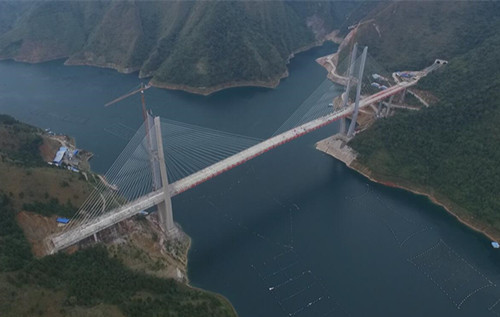 紅水河特大橋位于廣西天峨縣與貴州省羅甸縣的交界處,橫跨紅水河“U”型峽谷,是銀百高速公路(G69)惠水至羅甸段的控制性工程,大橋全長956米,折H型主塔高達(dá)195.1米。大橋在建設(shè)過程中,結(jié)合當(dāng)?shù)氐匦蔚孛驳忍攸c不斷創(chuàng)新施工技術(shù),實現(xiàn)了三個“第一”:是世界上第一座非對稱混合式疊合梁斜拉橋,第一次提出纜索吊裝系統(tǒng)用于斜拉橋上構(gòu)施工的思路,第一次將主梁頂推、主梁支架現(xiàn)澆、主梁纜索吊裝三大施工工藝同時用于同一座橋梁施工中。目前,大橋項目科研團(tuán)隊已經(jīng)完成“斜拉橋主塔鋼錨梁安裝施工工法”編制,“紅水河特大橋施工關(guān)鍵技術(shù)研究”獲自治區(qū)級科研課題立項,自主研究創(chuàng)新的12項發(fā)明成果中已有7項獲得國家實用新型發(fā)明專利證書。項目班組也先后獲得全國公路交通系統(tǒng)“模范班組”等多項國家級、省級殊榮。