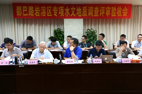 袁道先院士(左二)參加都巴路初步設(shè)計(jì)巖溶區(qū)專項(xiàng)水文地質(zhì)調(diào)查評(píng)審驗(yàn)收研討