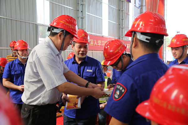 王躍飛給現(xiàn)場(chǎng)員工贈(zèng)送黨的十九大報(bào)告有關(guān)書籍?