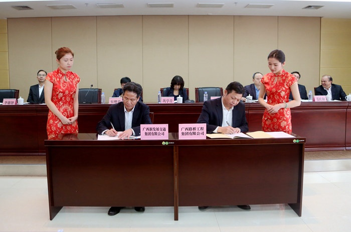 會后,自治區(qū)國資委副巡視員鞏學青與集團公司黨委書記、董事長朱堅和一同為集團公司“廣西交通建設人才小高地”揭牌。