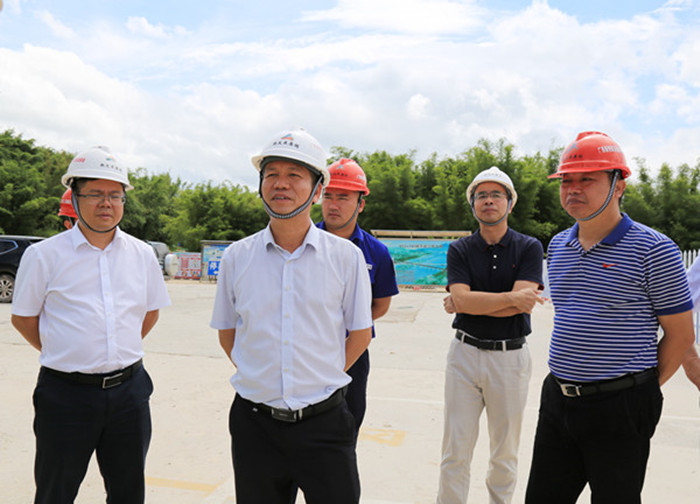 圖為朱堅和董事長(左二)在桂江大橋施工現(xiàn)場調(diào)研