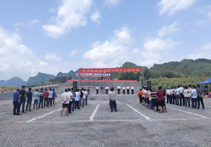 開工現(xiàn)場會在河池市都安瑤族自治縣召開。廣西北部灣投資集團(tuán)有限公司黨委副書記、副董事長、總經(jīng)理高新宣布項目開工。自治區(qū)高速公路管理局局長周北,河池市委常委、市人民政府常務(wù)副市長韋朝暉等領(lǐng)導(dǎo)參加會議。