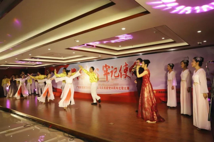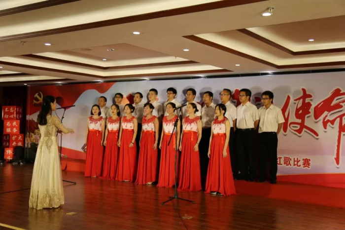 來自新發(fā)展集團(tuán)本部,各直屬單位、指揮部的11支代表隊(duì)歡聚一堂,用滿腔熱情唱響紅色旋律,歌頌黨的恩情,獻(xiàn)禮建黨98華誕。其中,新發(fā)展集團(tuán)本部吟唱余音渺渺的《愛國歌》,用現(xiàn)代舞和朗誦的形式表現(xiàn)個(gè)人與祖國血脈相連、風(fēng)雨同當(dāng)?shù)那殂海罱K拔得頭籌;欽北改擴(kuò)建指揮部、人防設(shè)計(jì)院緊緊結(jié)合“不忘初心、牢記使命”主題教育的根本遵循,分別合唱《不忘初心》《走向復(fù)興》兩首曲目,并做到演唱連貫、節(jié)奏鮮明、情緒準(zhǔn)確,分別獲得二等獎(jiǎng);大浦公司、融河高速指揮部、鐘昭高速指揮部則在確保歌曲的完整度、準(zhǔn)確度、協(xié)調(diào)度的同時(shí),在服裝、隊(duì)形、伴奏上別出心裁,最終獲得三等獎(jiǎng);其余隊(duì)伍也各具特色,使所選紅歌綻放出燦爛的光彩,展現(xiàn)出新發(fā)展集團(tuán)奮斗拼搏的精神面貌。